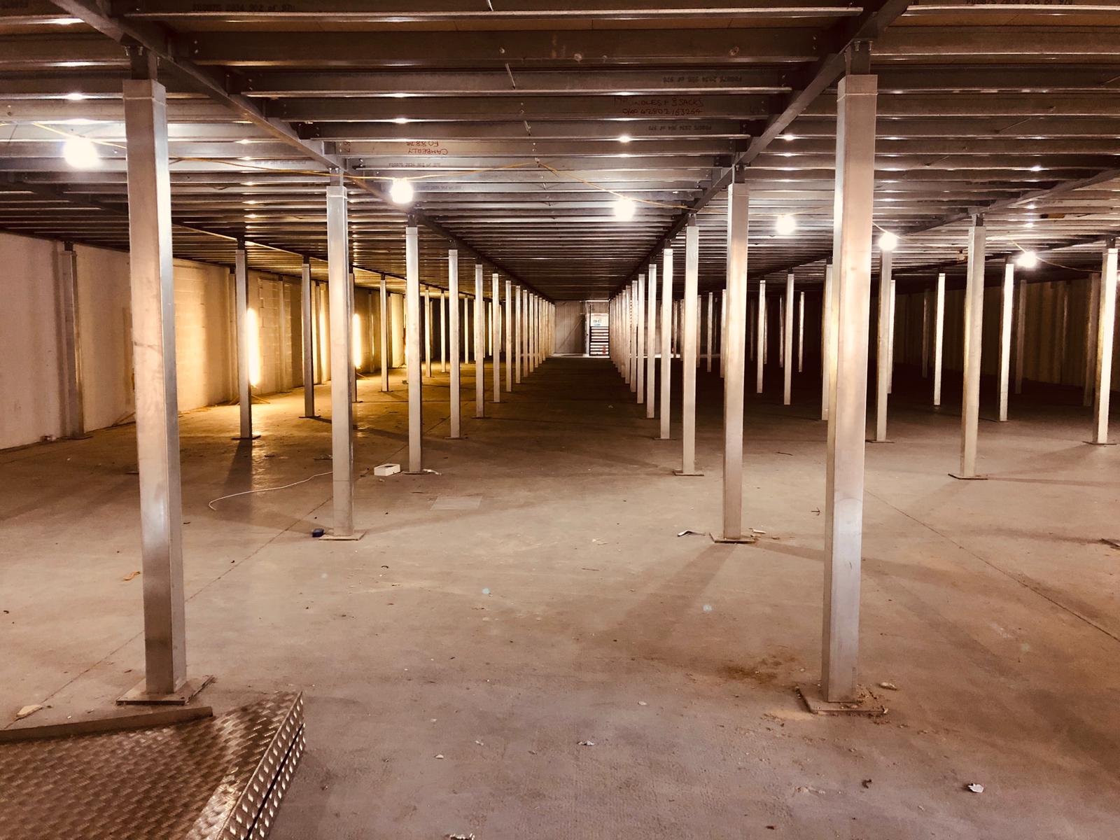This week we started a strip out of the Access Self Storage at Camberley, the mezzanine is spread over 3 units and measure 2200sqm. None of this mezzanine will end up in scrap bins and instead reused at another location.