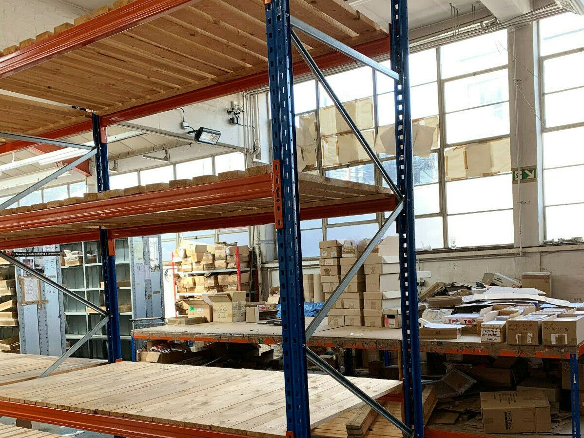 Arabesque Fine Cards and Gifts / case studies / By Richard We had a client asking us to clear their warehouse of Provost & Esmena pallet racking with timber slatted decking, I was a very clean parcel of pallet racking and we was happy to help and get the job done before his deadline.
