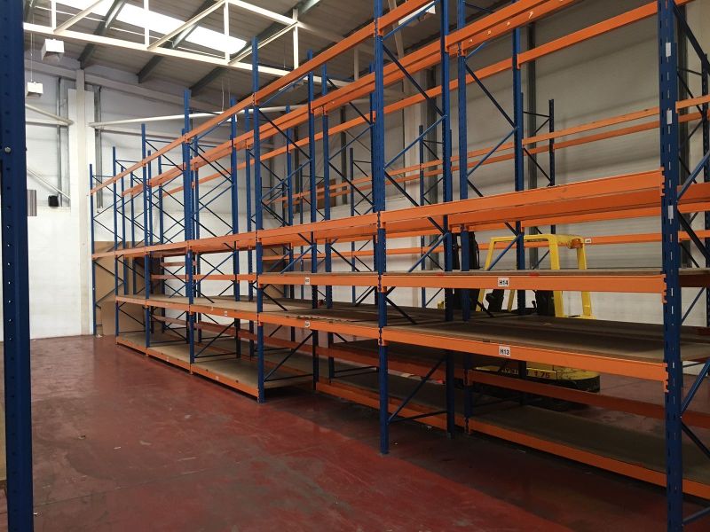 Today we are clearing a site for BMV Distributors Ltd, 14 Wedgwood Curt, Stevenage, SG1 4QR, KS Hilo pallet racking with frames 5000mm x 900mm and 2700mm beams. Old but very clean and perfect for another small business looking for some pallet racking.